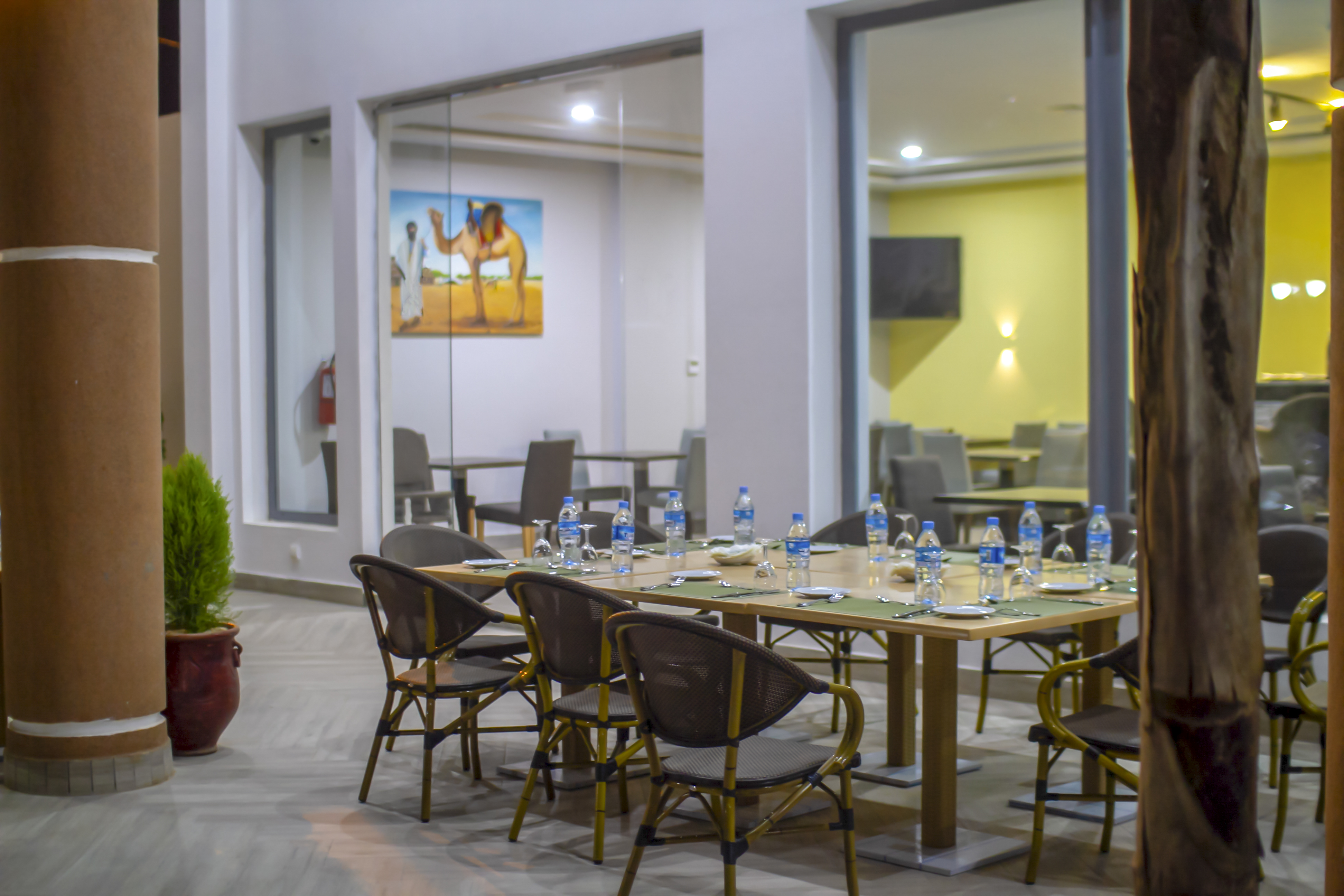 Le restaurant de l’hôtel est ouvert tous les jours et propose une cuisine moderne et mixte (Française, Marocaine, Mauritanienne ….)